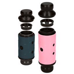 Leksaken mäter Ø7 och L16,5 cm. På leksaken finns det totalt 5 hål som hundgodisarna kan ramla ut ur. 4 små hål och 1 lite större. Du kan själv justera om du vill att godsakerna ska ramla ut ur de 4 små hålen eller det ena lite större hålet.