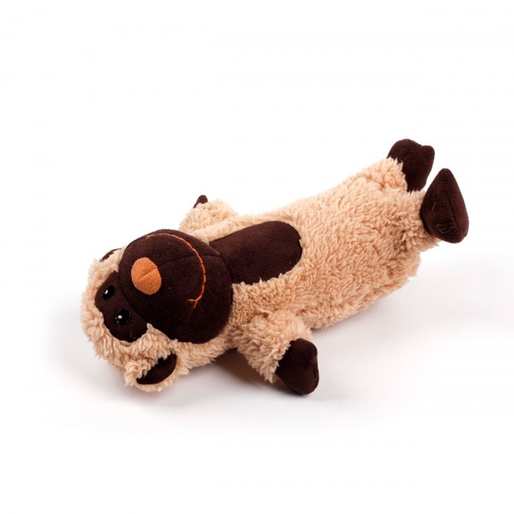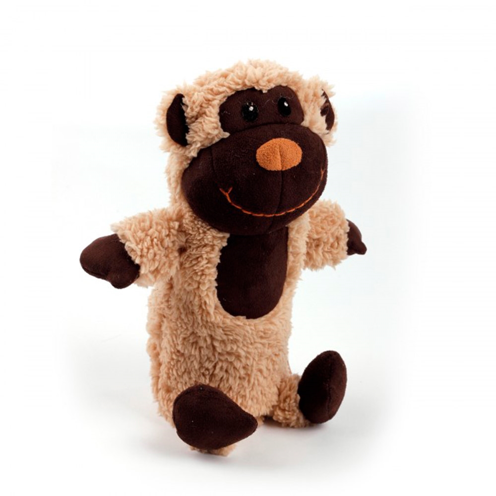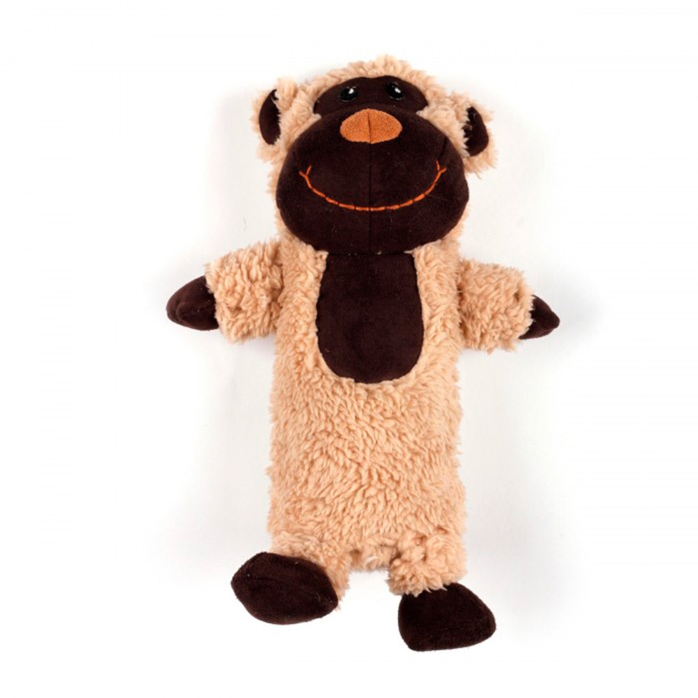 Låt hunden ha en fest med denna underbara krämfärgade apa. Apan är gjord av mjukt imiterat mocka, lammplysch och rep. Inuti gosedjuret finns en prasslande flaska som får leksaken att ge ifrån sig roliga ljud när hunden tuggar och greppar den.