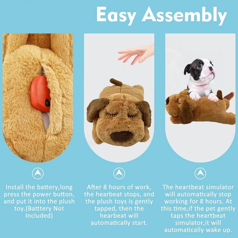 Nallen har ett hjärta inuti sig, som ger ljudet av hjärtslag. Det kan verka lugnande för många hundar.