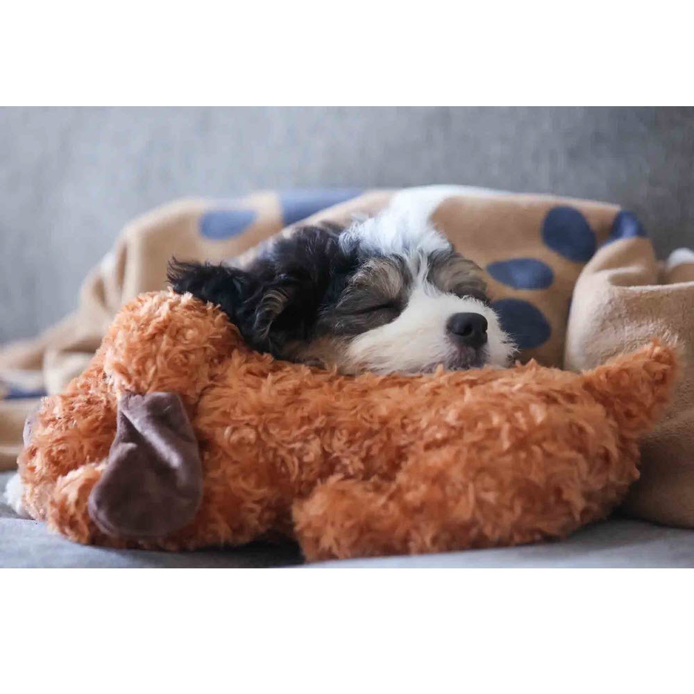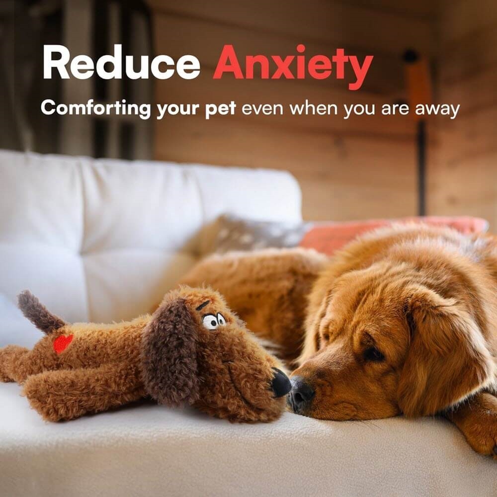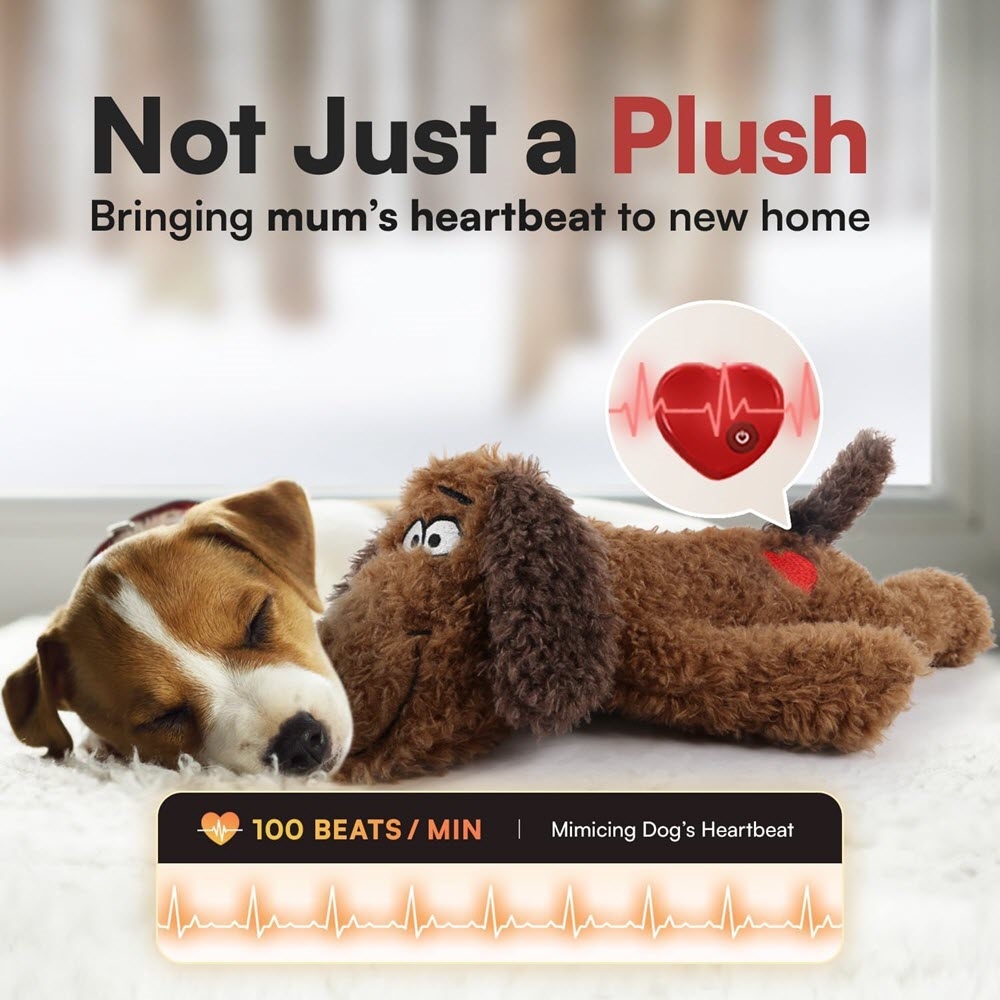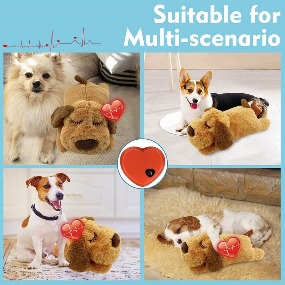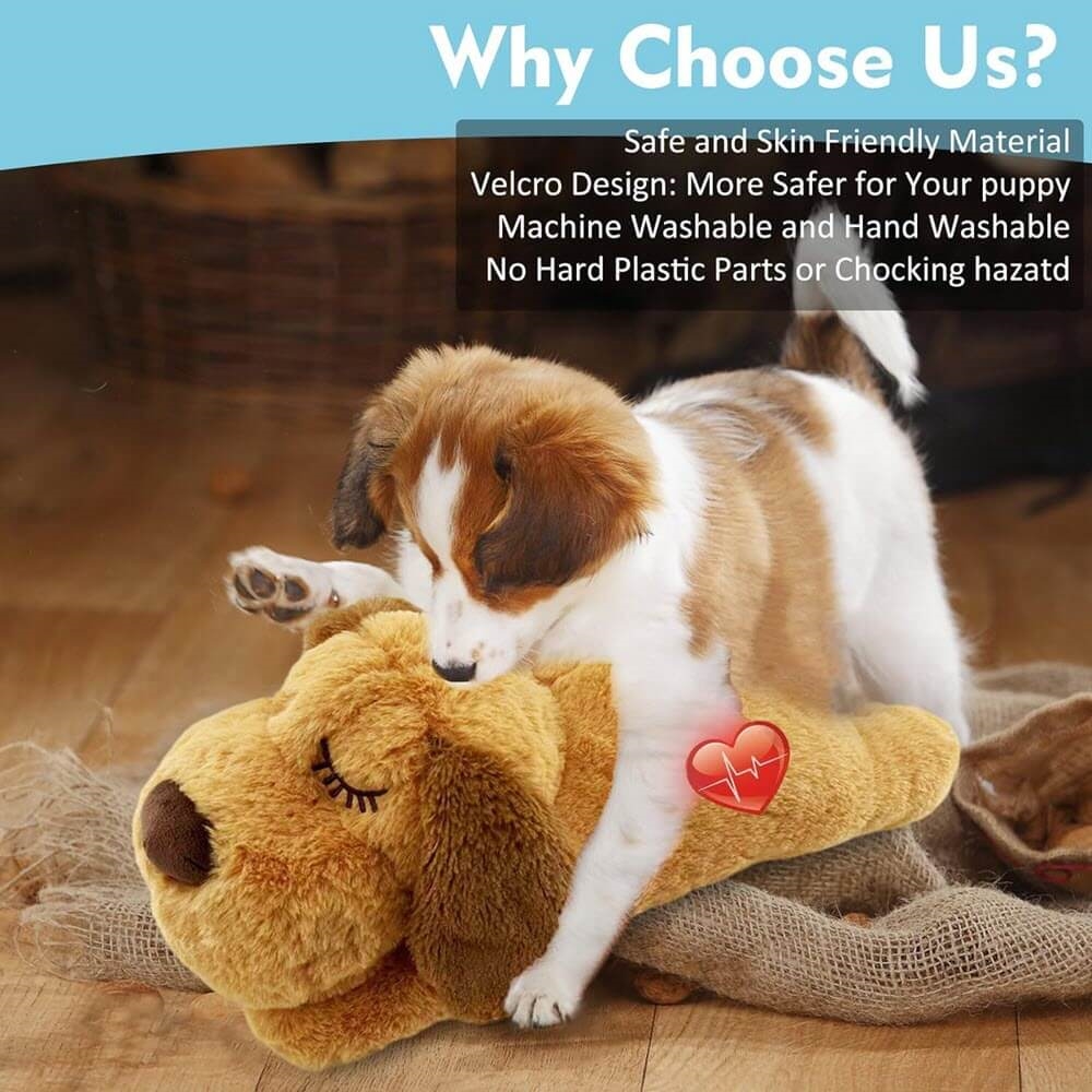 Nalle med hjärtljud, som kan vara mycket lugnande för hunden.