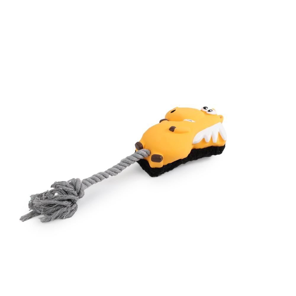 Denna underbara leksak kommer din valp eller lilla hund att älska. Leksaken har ett rep som din hund kan bita i för att svinga runt med eller bära omkring på.