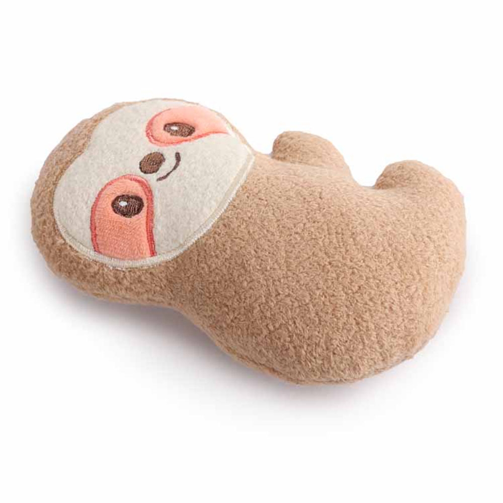 Både gosedjuret och latexgrenen har squeakers, så leken blir ljudlig och rolig, samtidigt som det mjuka materialet gör sug- och kramobjektet till en trygghetsfaktor.