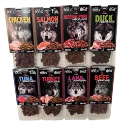 Godis bestående av 100% färskt kött från färsk fisk, kyckling och kalkon.