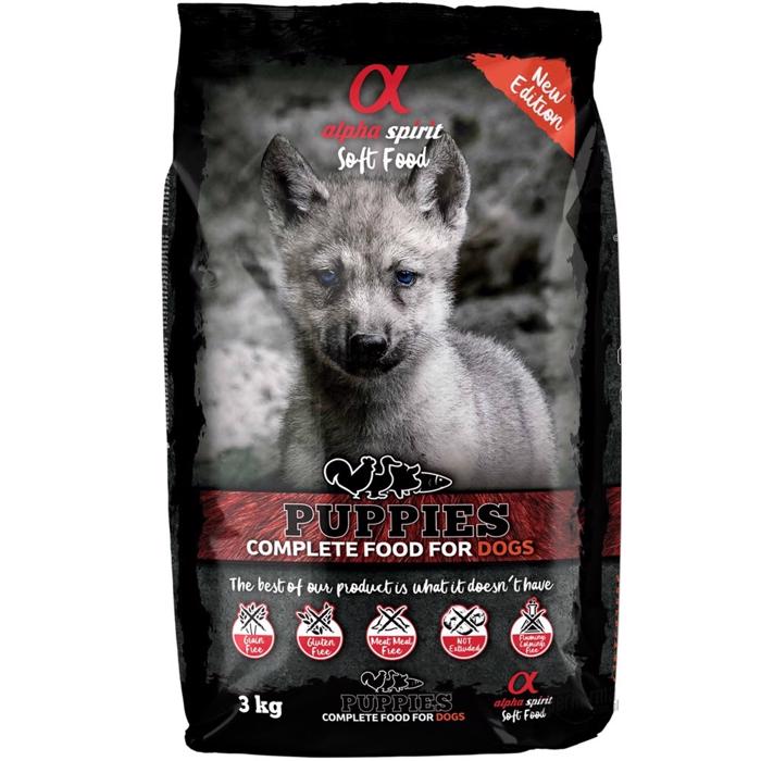 Alpha Spirit Semi-Moist Complete Puppies ger din valp ett smakrikt foder av mycket hög kvalitet, ytterst idealiskt för daglig utfodring, tack vare det anpassade, balanserade receptet samt den goda smaken.