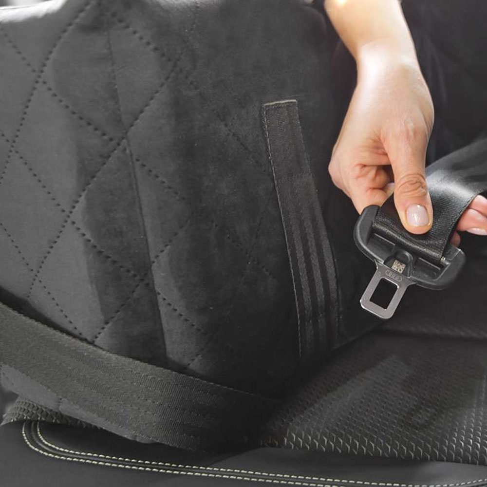 Bilsätet har fasta förstärkta höga kanter runtom, så att din hund kan känna sig säker under er bilresa. Detta förhindrar också att din hund lämnar interiören.