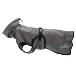 Härlig mjuk hundbadrock för efter tvätt eller som skydd av pälsen före utställning. Perfekt efter en simtur.