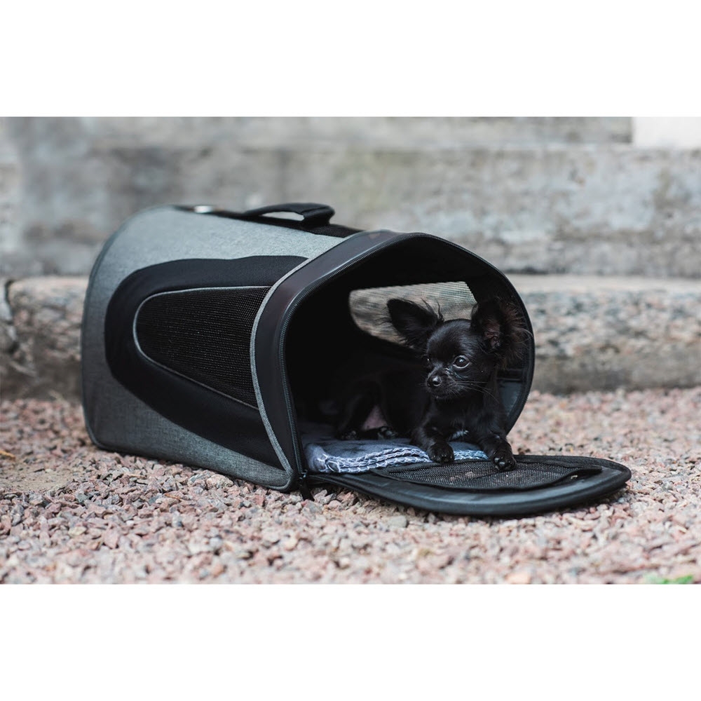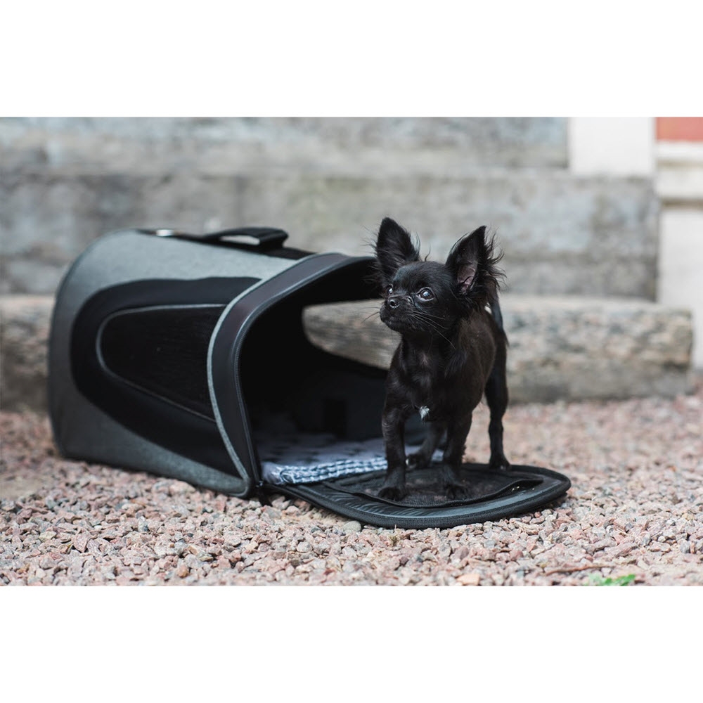 Smart designerväska för den lilla hunden på max 7 kg. Väskan är gjord i slitstarkt och smidigt kanvas. Den kan lätt vikas ihop.