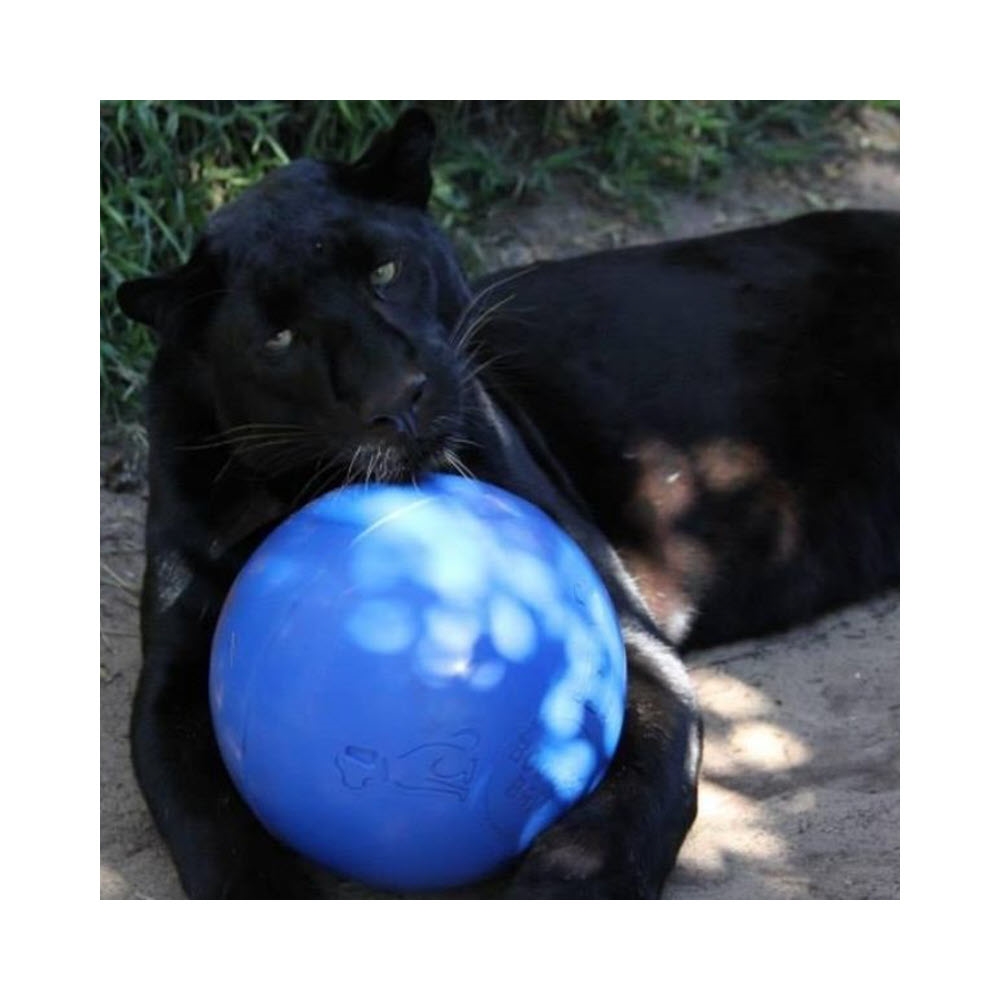 En hund som kan leka och lämna bollen själv. Men också en hund som inte kan få nog och då måste vi ta bollen på paus. Var försiktig med din hunds tänder. Det är inte meningen att de ska ligga och bita i denna boll. De ska leka med den. Valla den och ha en fest. De flesta hundar är galna i en Boomer Ball. De används också till vilda djur i fångenskap som bra aktivering.