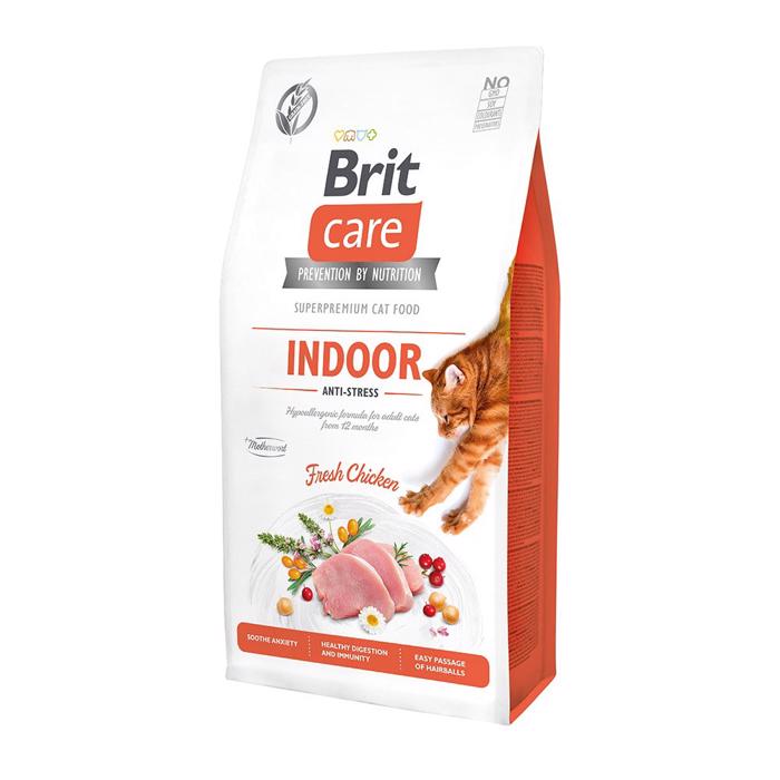 Brit Care Indoor Anti-Stress är ett helfoder för vuxna katter från 12 månaders ålder. Fodret är spannmålsfritt, utan färgämnen, utan konserveringsmedel, utan GMO och utan soja.