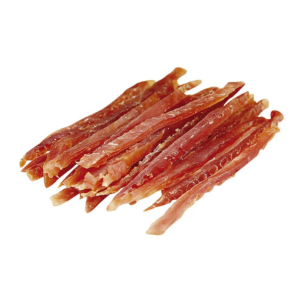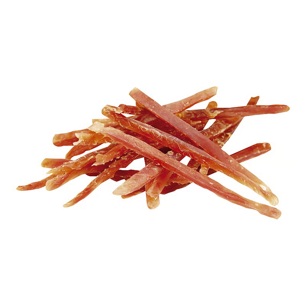 Läckra strimlor av biologiskt ank-kött med den typiska framträdande smaken som berikar ditt husdjurs kost. Godbit av ank-kött för alla hundar med stor aptit. Dessutom med ett högt innehåll av vitaminer, mineraler och essentiella aminosyror. Tillskottsfoder för hundar. Alla typer av hundar. Du känner din hund bäst och kan bedöma hur många det finns "råd" till i kostprogrammet.