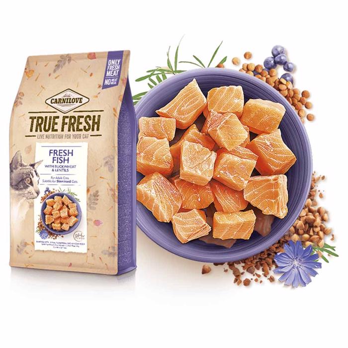 Carnilove True Fresh kattmat är gjord av färsk fisk, och alltså inte fiskmjöl. Eftersom köttet bearbetas färskt, ger det fodret en äkta frisk och utmärkt smak, smältbarhet och en mer naturlig form av näring. Du får ett kvalitetsfoder som din katt utan tvekan kommer att älska att sätta tänderna i.