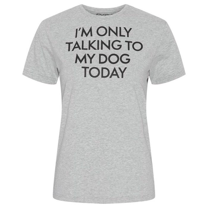 Super söt t-shirt med texten "I'm only talking to my dog today". Välj mellan 7 storlekar.
