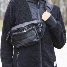 Väskan kan bäras antingen runt midjan eller över axeln.