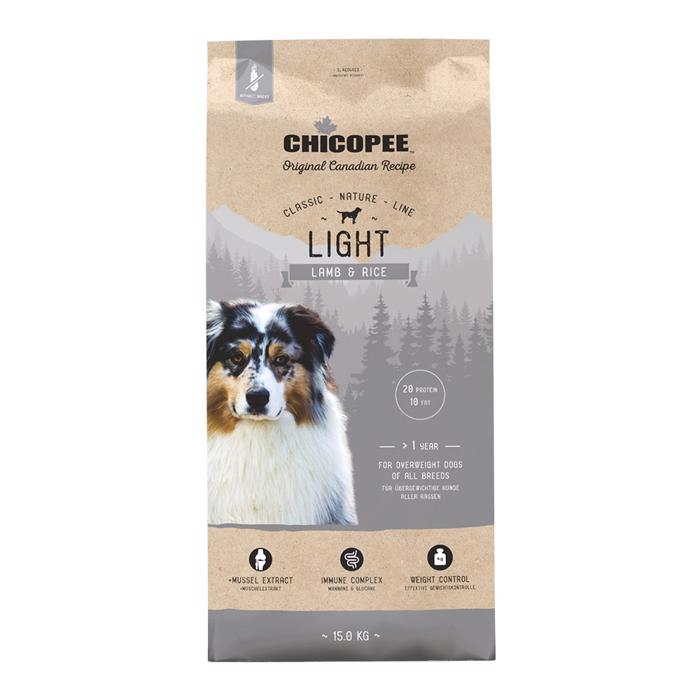 Chicopee Classic Nature Line är en serie helfoder för hundar helt utan vete, vilket gör det till ett bra val för hundar med veteintolerans. Detta helfoder är för vuxna hundar från cirka 1 års ålder. Fodret är särskilt lämpligt för hundar som har svårt att hålla vikten nere, eller hundar som behöver gå ner i vikt.