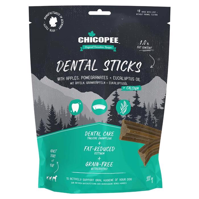 Disse Chicopee Dental Sticks är gjorda med äpplen, granatäpplen, eukalyptusolja och kalcium. Tuggbenet kommer att bidra positivt till din hunds munhygien och är lämpligt för hundar från 1 år.
