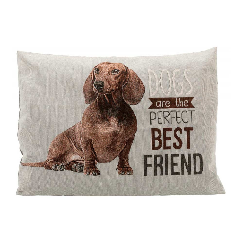 Vad är sötare än att ha en superfin hundkudde i hemmet. Denna vackra kudde är grå och har en kär tax och en söt text på. "Dogs are the perfect best friend" och det är nog många av oss som kan relatera till det.