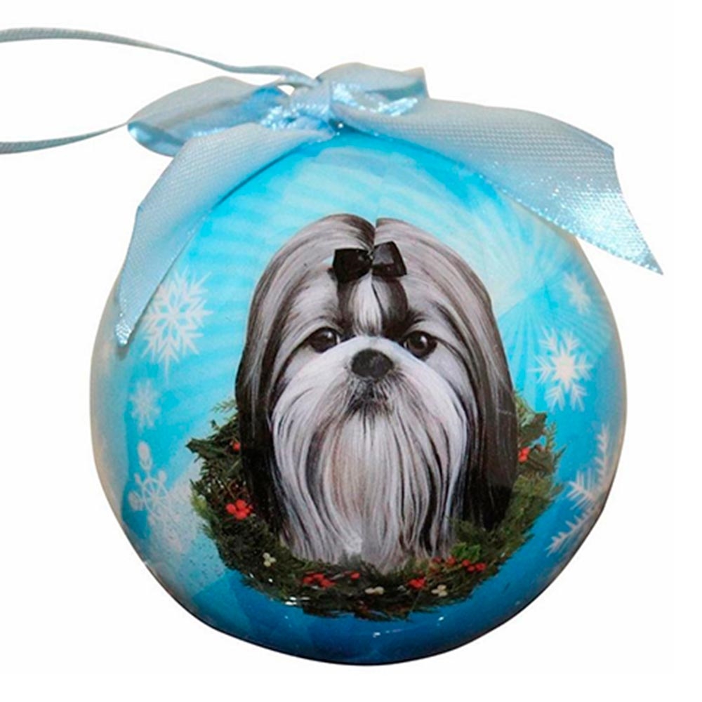 Christmas Ornament Julgranskula Med Shih Tzu På Blå Kula