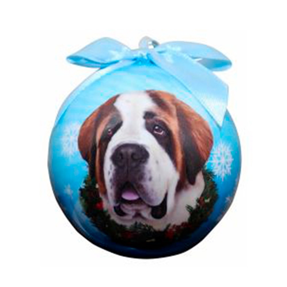 Christmas Ornament Julgranskula Med Sankt Bernardshund på Blå Kula