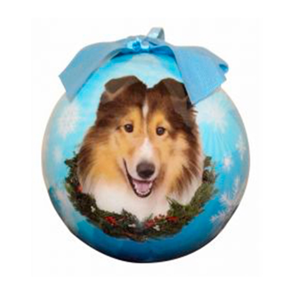 Christmas Ornament Julkula Med Sheltie på Blå Kula