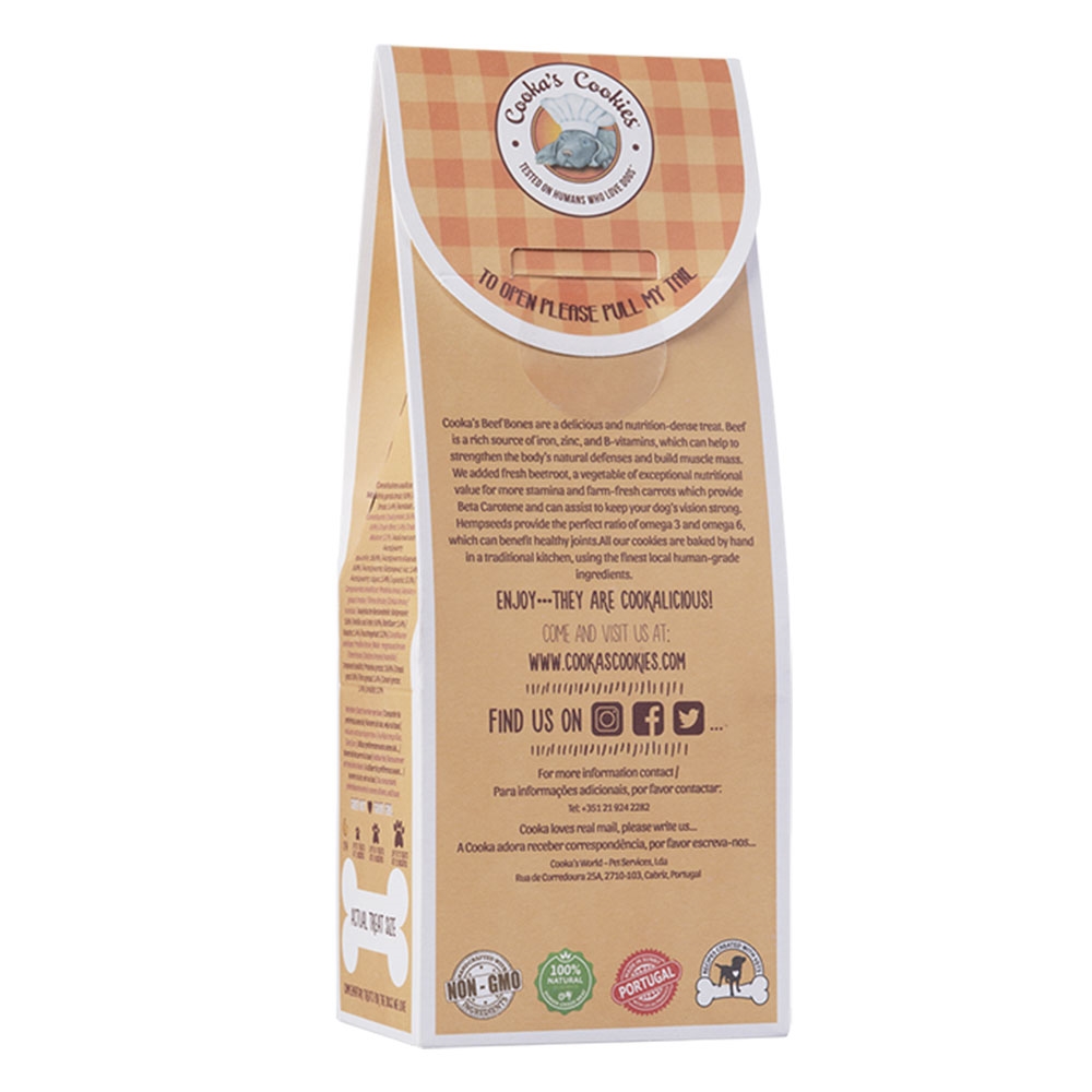 Här får du 100 gram hundgodis formade som små köttben. Godiset är vete- och glutenfritt, och utan tillsatta konserveringsmedel. Du kan med gott samvete ge dessa godsaker.
