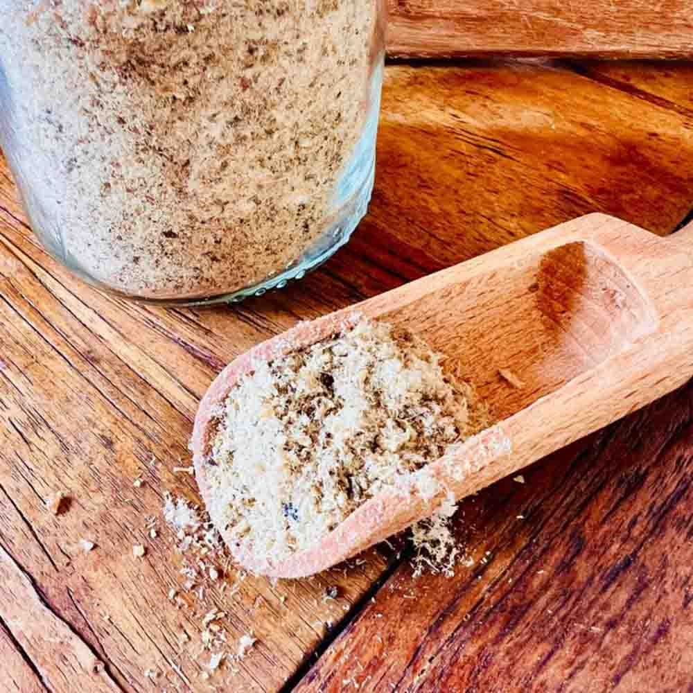 Pulveriserad oxvom med rosmarinextrakt. Strö bara över djurets foder.