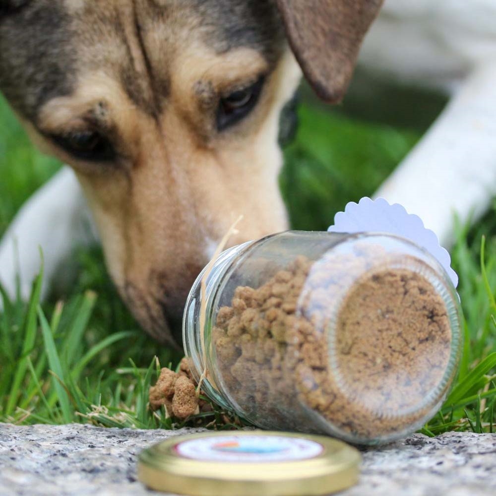 Kycklingströssel som topping på hundens torr- eller våtfoder.