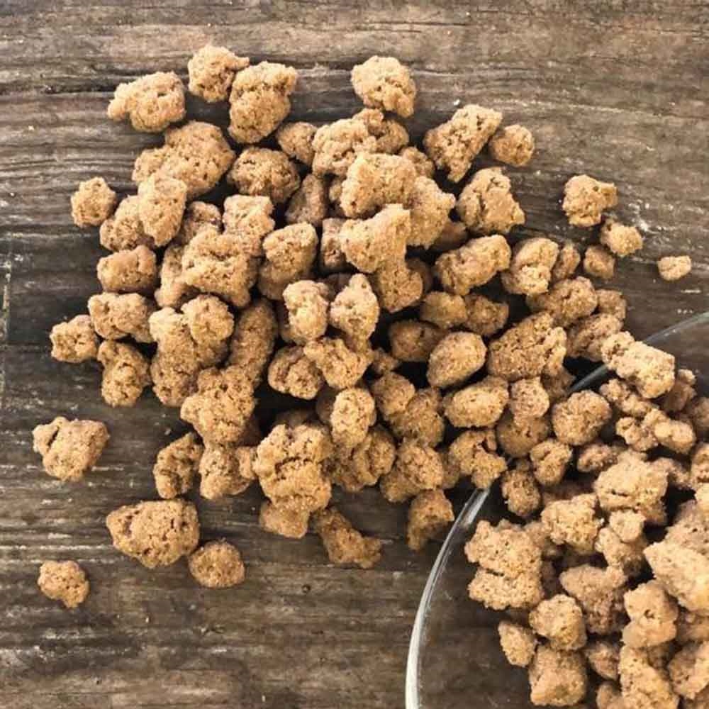 • Gjort av dehydrerade kycklingbröst, hackat och smulat
