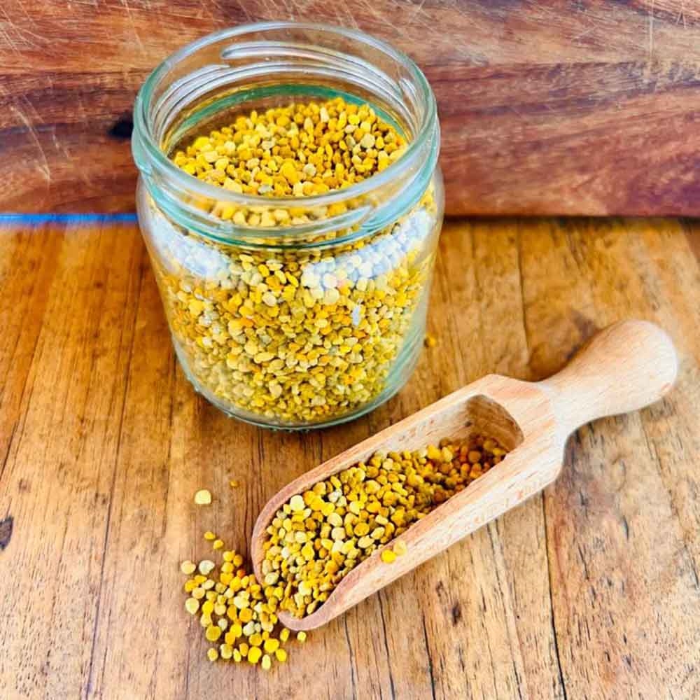 Det finns 110 gram i glasburken.Sammansättning: 100% Bipollen
