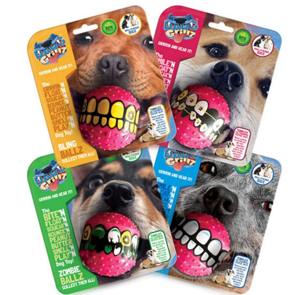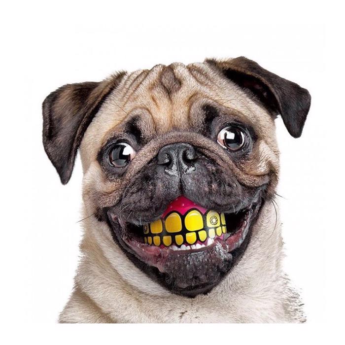 De här roliga bollarna med tänder ser ovanligt festliga ut när hunden har dem i munnen. Det finns massor av bilder på nätet av hundar med de här bollarna i munnen. Det får vem som helst att le.