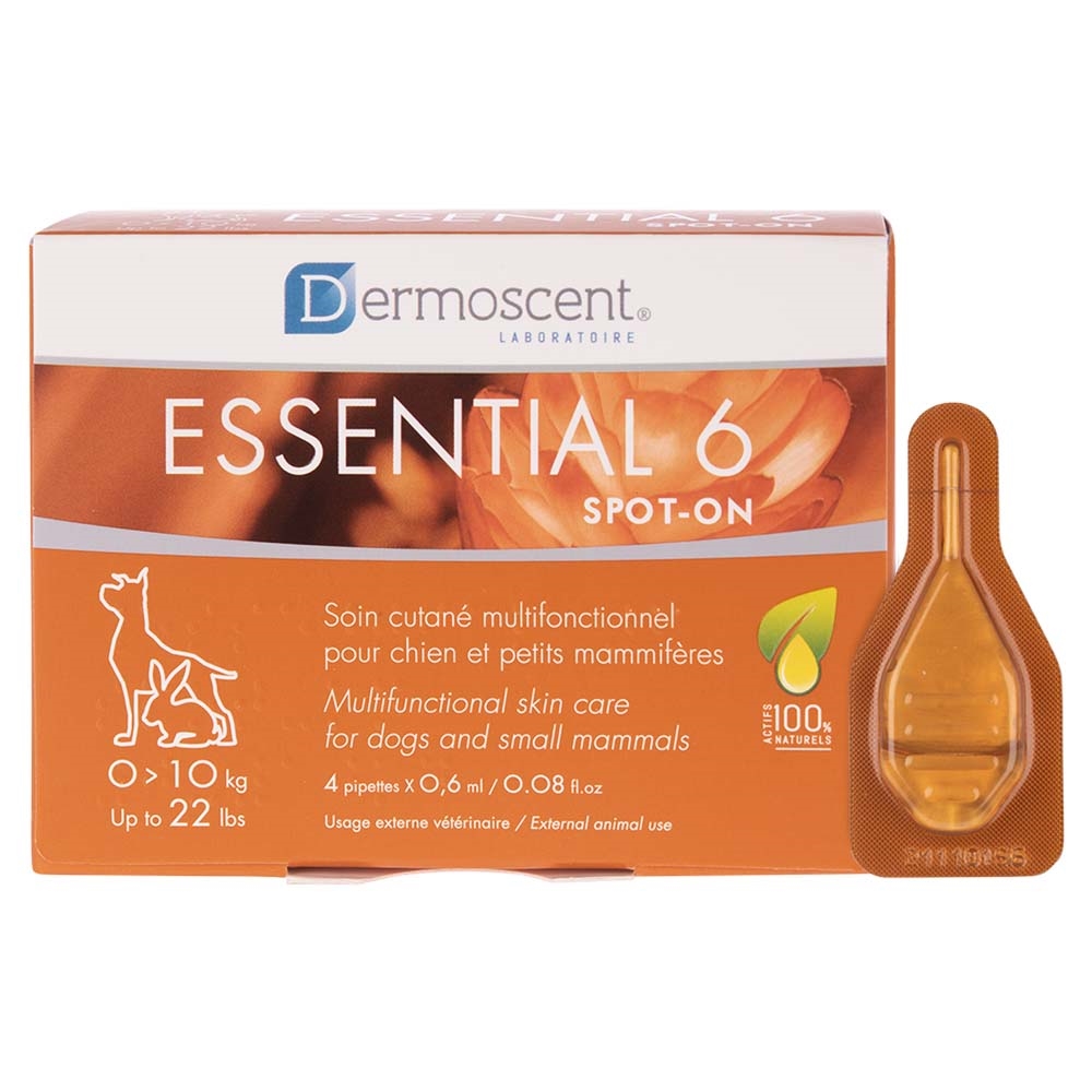 Essential 6® spot-on är den första patenterade dermo-care spot-on, som ger en enkel och effektiv lösning på hudproblem hos hundar, katter och små däggdjur som kaniner, illrar och marsvin