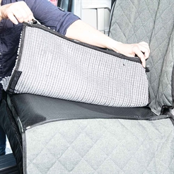 Sätesöverdraget har också en hängmattsfunktion, som förhindrar din hund från att hoppa fram på framsätet, men också att onödig smuts hamnar i bilens botten. Både hängmattsdelen och ryggstödet är gjorda av slitstarkt och vattentätt Oxford-tyg.