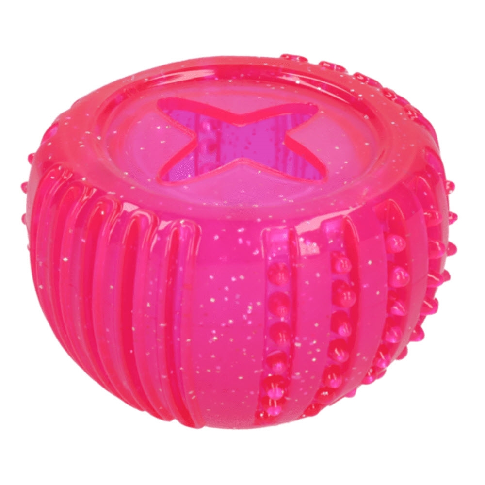 Bollen har små gummitaggar på utsidan så den samtidigt bidrar till din hunds munhygien. Genom leken masseras tandköttet och tänderna rengörs. Samtidigt reducerar du plack och tandsten. En multifunktionell hundleksak.