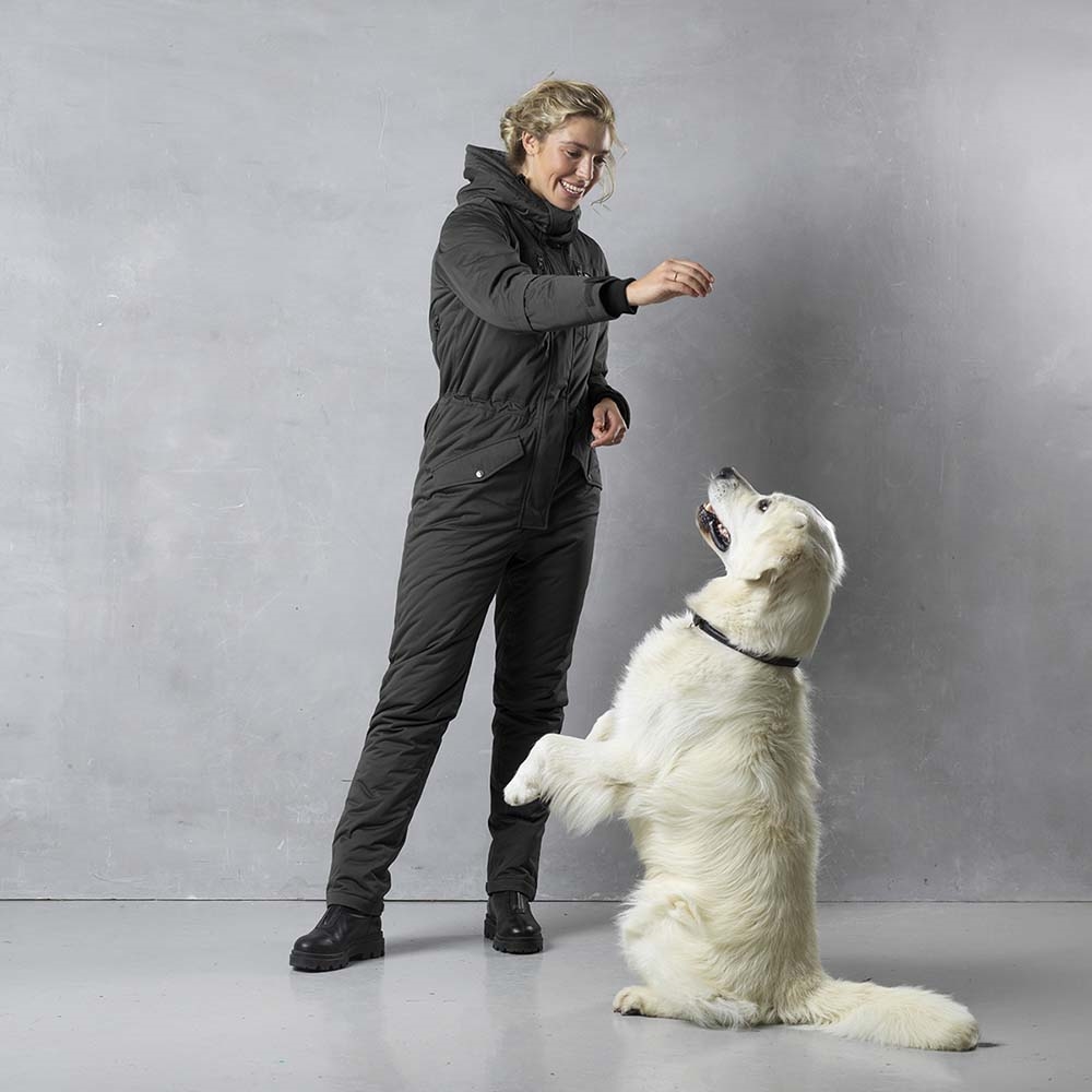 Här är dräkten som håller dig varm och torr med garanti på promenaderna. Den mjuka och sportiga heldräkten har extra fyllning på ryggen jämfört med tidigare modeller. Det har kommit en längre dragkedja, så dräkten är ännu lättare att ta av och på med skor på, och det har kommit fler reflexlogotyper på dräkten.