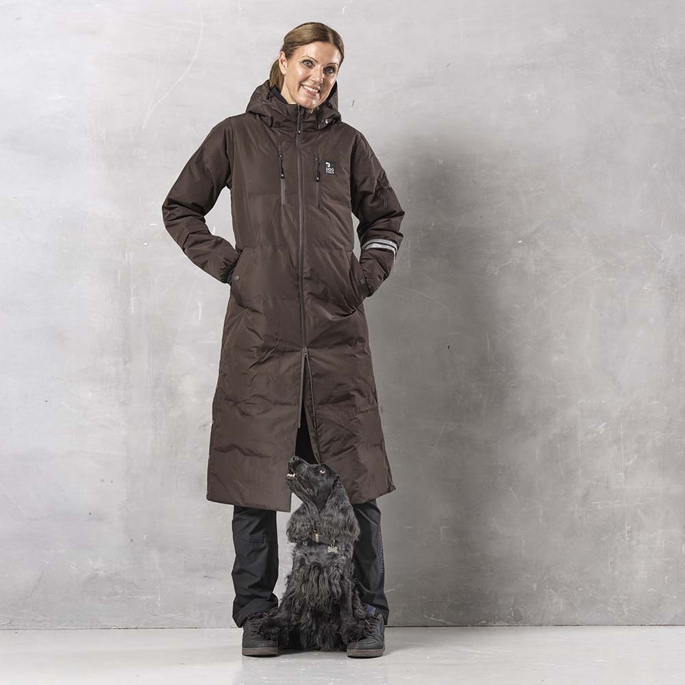 DogCoach lång damkappa, designad som en livsstilsprodukt för dig som vill vara torr och bekväm – utan att behöva hoppa i overall eller överdragsbyxor.