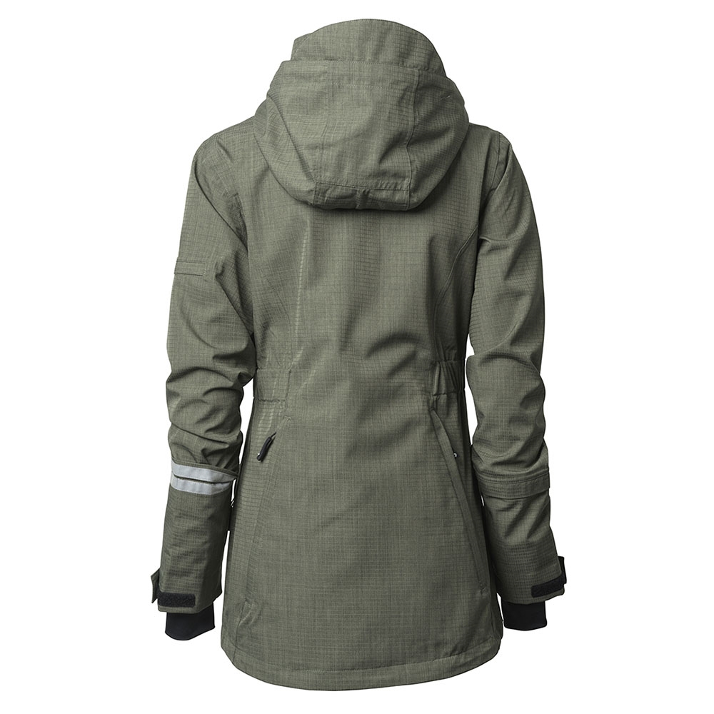 - Tejpade sömmar Vattentät 2-vägs frontdragkedja (gör det möjligt för dig att öppna jackan nerifrån när du sätter dig ner)