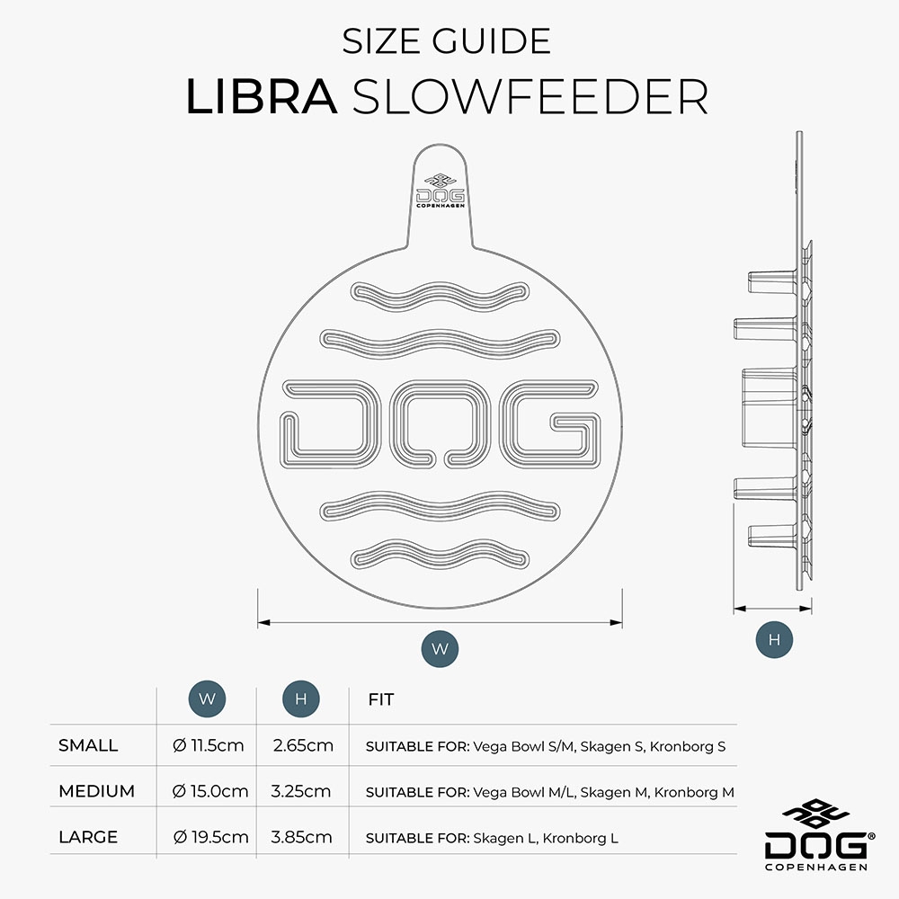 Libra Slowfeeder finns i tre olika storlekar som passar Dog Copenhagens serie av hundskålar.