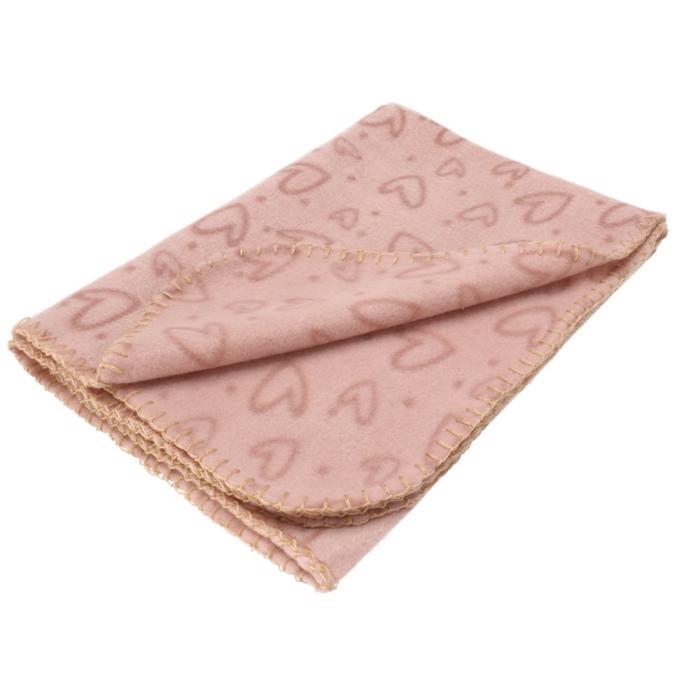 Mjukt och härligt fleecetäcke med vackert mönster av hjärtan i dämpade färger. Här i modellen ROSA