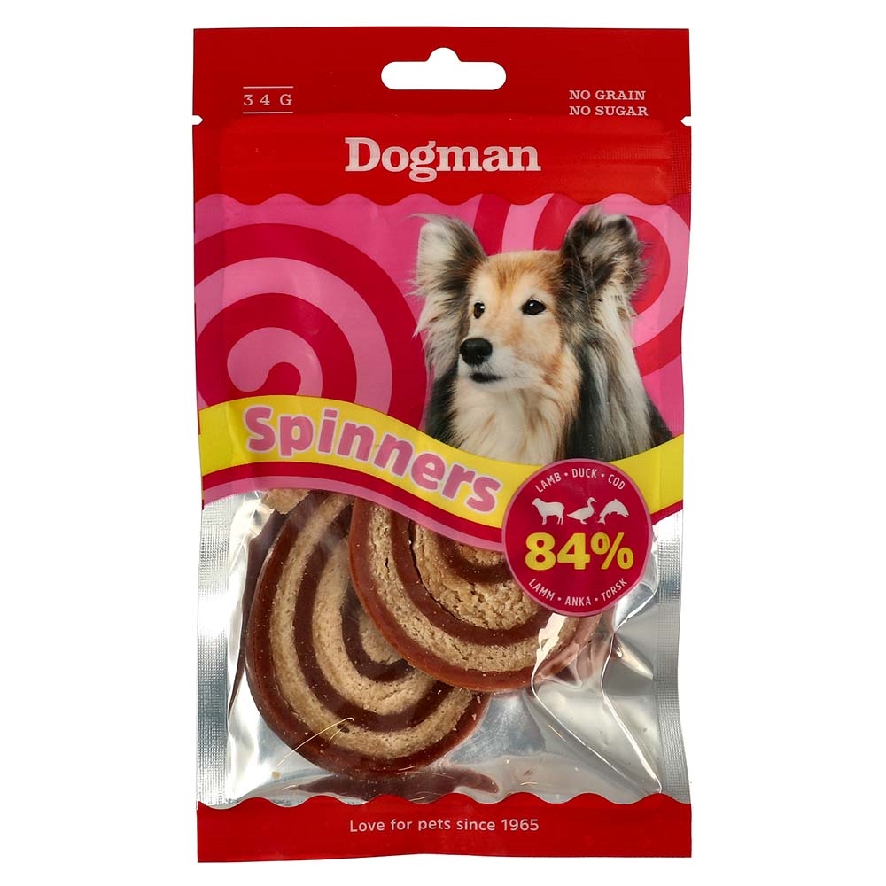 Dogman Spinners Ett Roligt Hundgodis med Lamm, Anka & Torsk LÅDA 20st