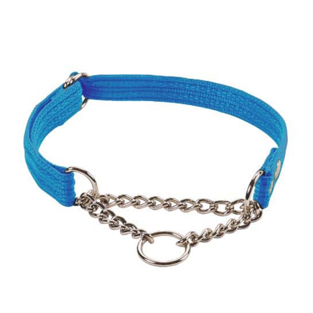 Hundhalsband med halvstrypkedja. Ett justerbart halsband tillverkat i nylon.