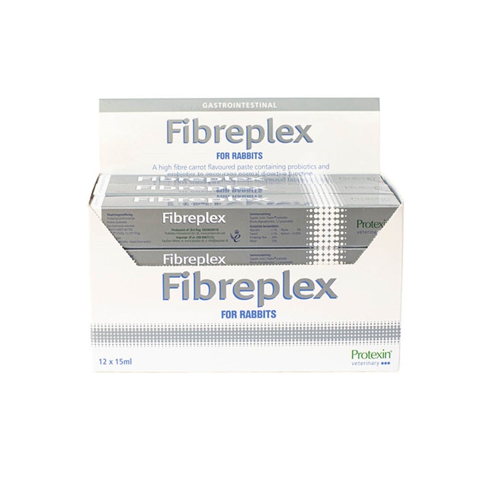 Fibreplex är en välsmakande "klar-att-använda" pasta innehållande goda, lättsmälta fibrer samt en del kalorier för kaniner. Just fibrerna säkerställer snabb återställning av normal matsmältningsfunktion i baktarmen.