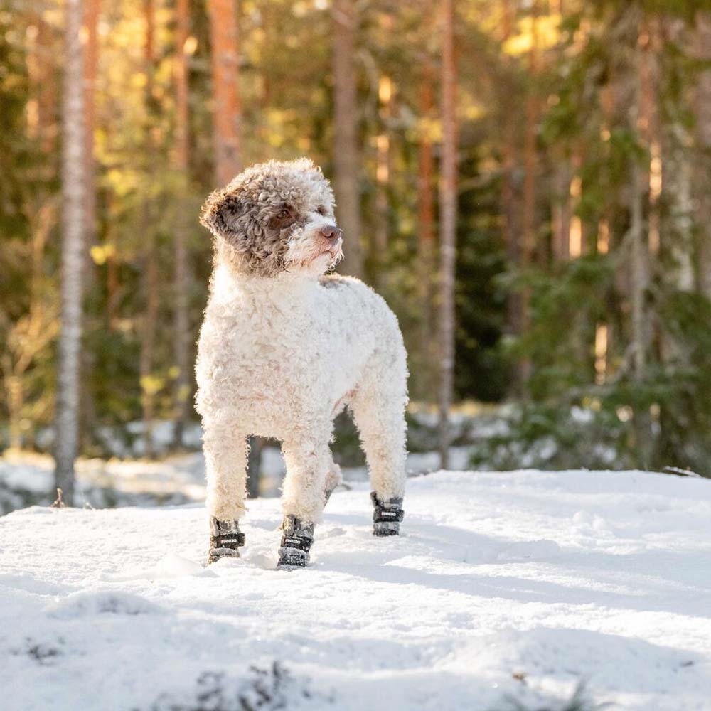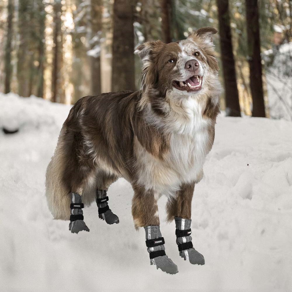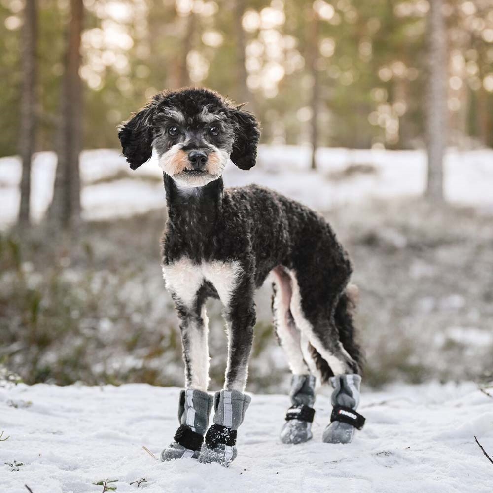 Snygga fleeceskor för hunden för att skydda tassarna mot snö, is och frost.
