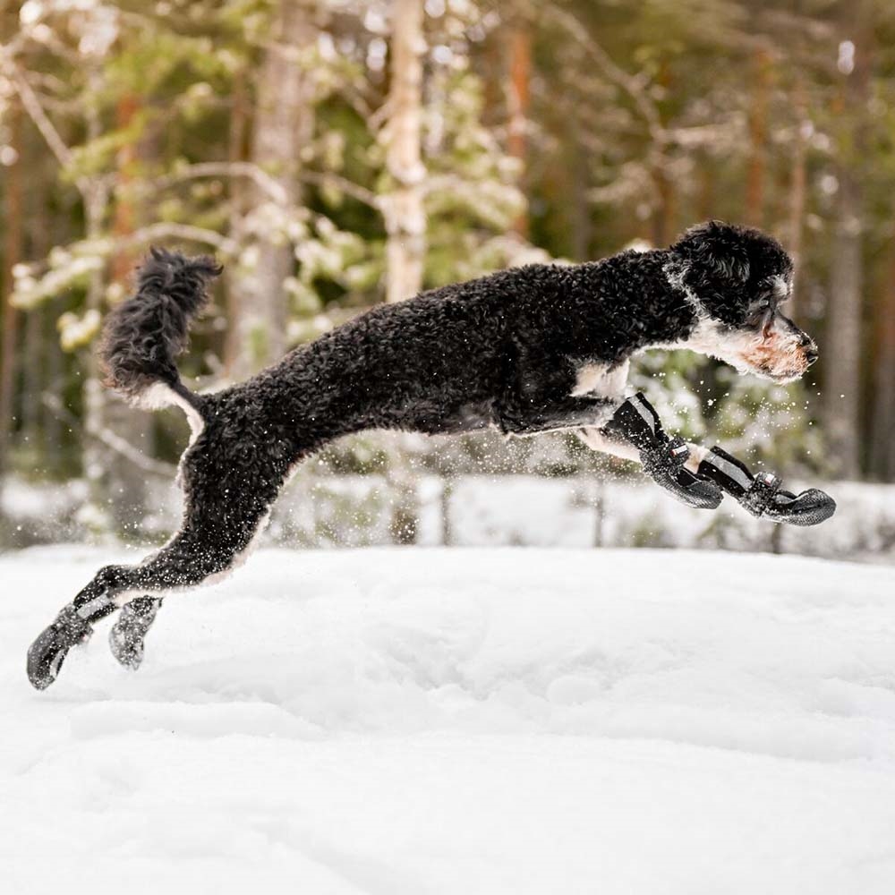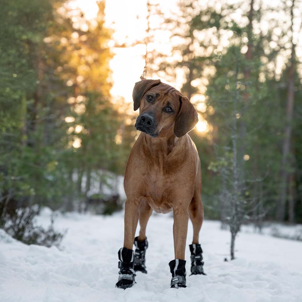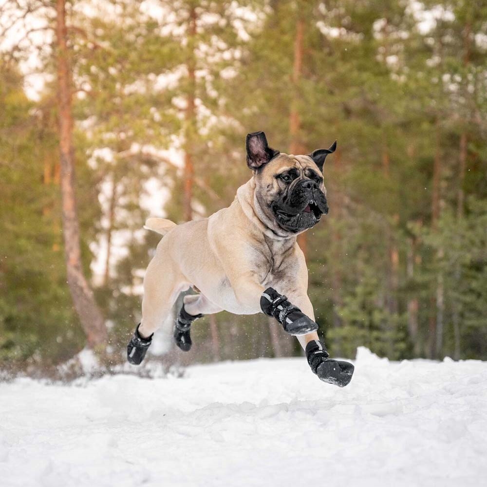 HALLA-stövlarna är designade för att förhindra frostskador och smärtsamma sprickor i tassarna, och de förhindrar också att snö och is samlas mellan trampdynorna.