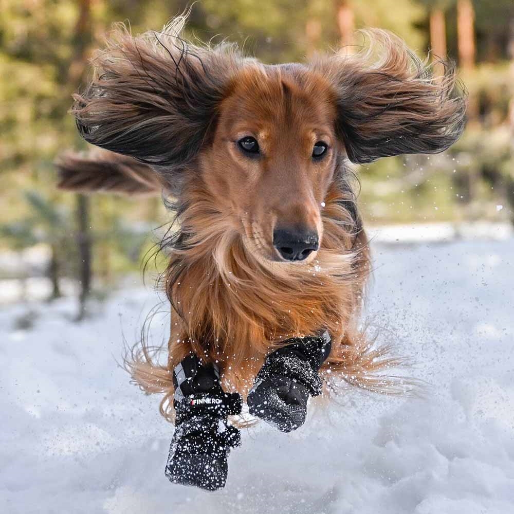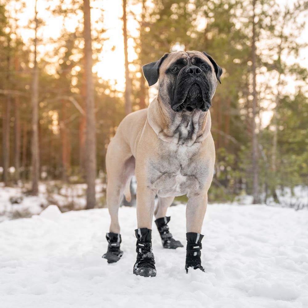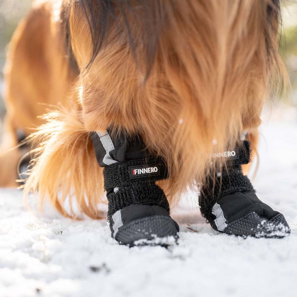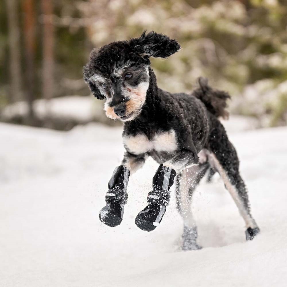 HALLA-stövlarna är designade för att förhindra frostskador och smärtsamma sprickor i tassarna, och de förhindrar också att snö och is samlas mellan trampdynorna.