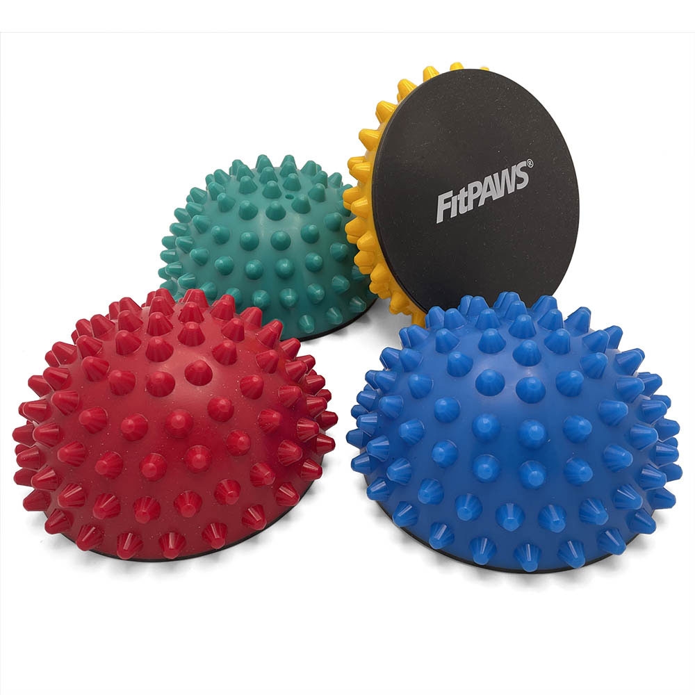 I detta balans träningsset får du 4 halvklot med knoppar på, för att stärka och träna hundens tassar, trampdynor, ben, motorik och balans.