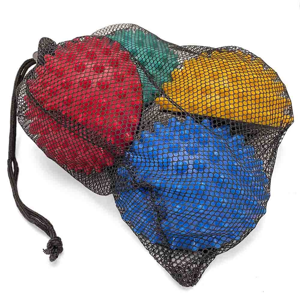 I paketet får du 4 st balanspuddar i olika färger, som levereras i en praktisk tygpåse.