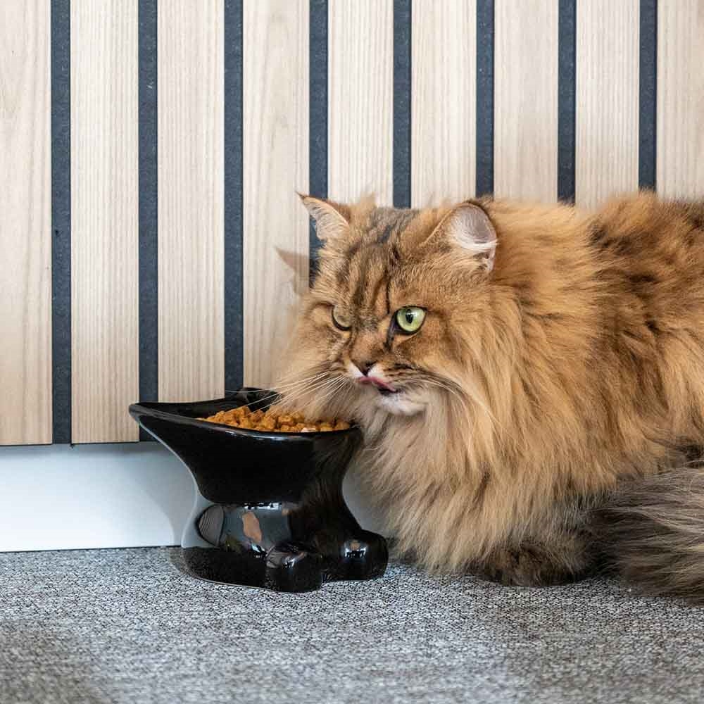 Ge din katt en elegant matupplevelse med denna stilrena, svarta keramikskål.