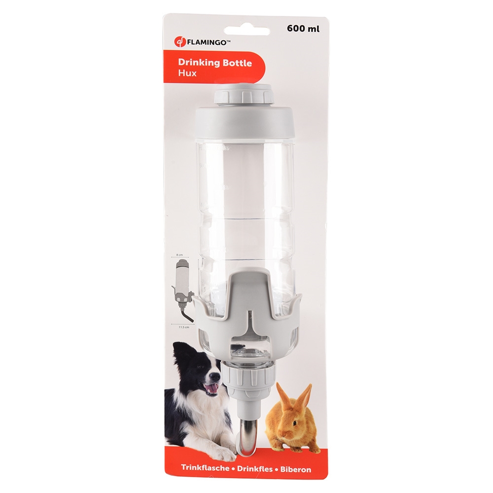 Vattenflaska för upphängning i hundburar av metall eller gnagarburar.