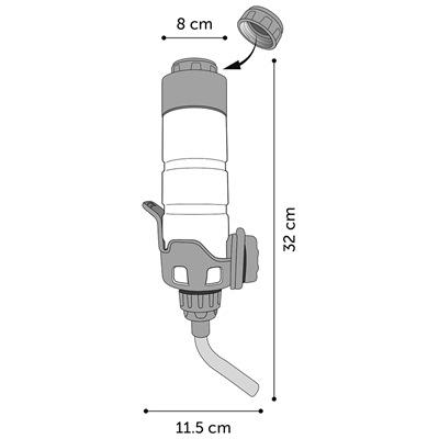 Flaskan är avsedd för att hängas upp i en trådbur.
