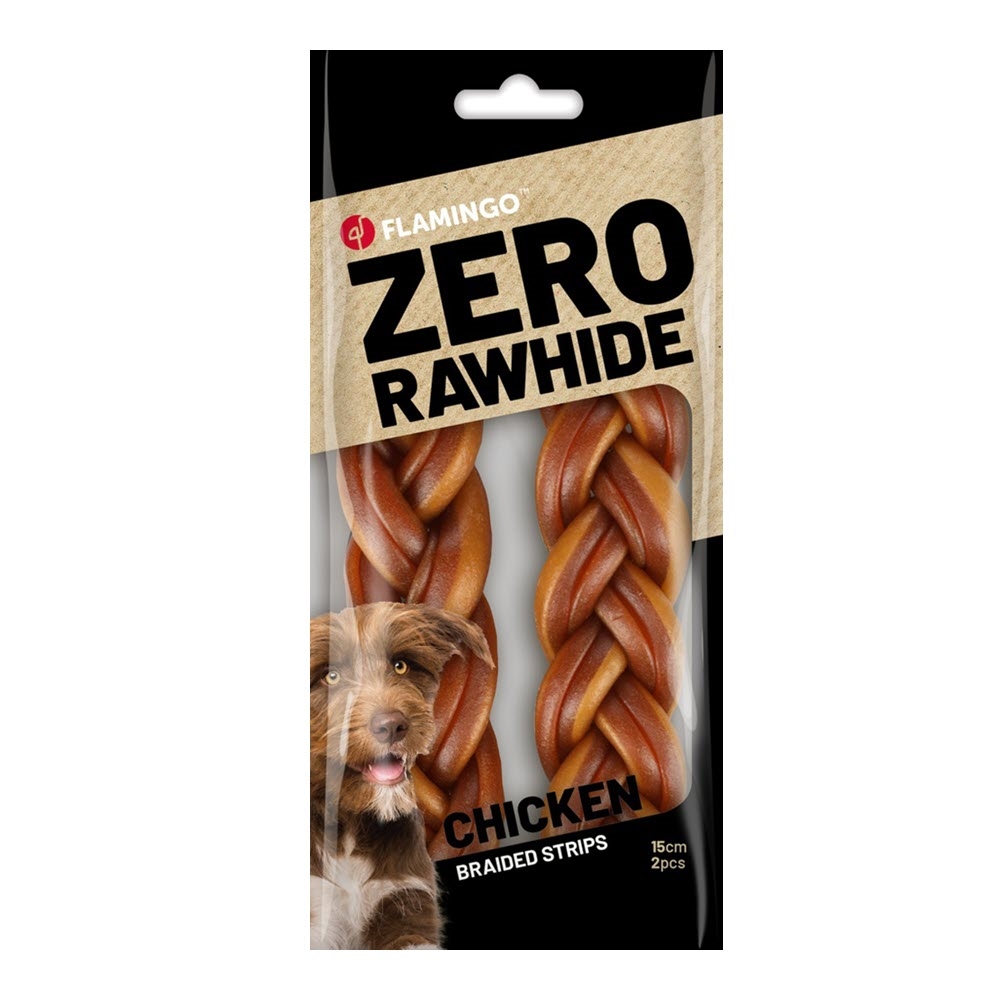 Zero Rawhide Braided Strips - Flätat tuggben med kycklingfyllning. 2 i förpackningen. De är 15 cm