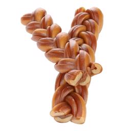 De här benen är flätade och fyllda med kyckling. Det är inte blekt oxhud men en stick som nästan gör detsamma. En bra sysselsättning för din tuggälskande hund.